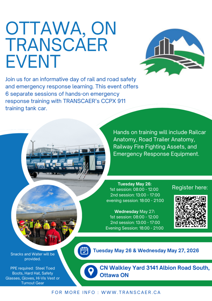 Join us for 6 separate sessions of hands-on emergency response training featuring TRANSCAER’s new CCPX 911 training tank car.